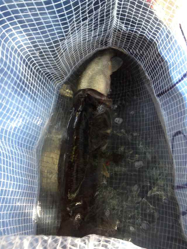 A funny thing happened during the weigh-in, one of our BBT kids who fishes this circuit with his dad came to the scales with two bass, the largest one weighing 4.99 pounds, caught by Eric and the smaller one caught by ten year old Jon. Jon joked around when asked who caught the big one and he said he did, then said, “no not really, my dad did!” Once the bass were weighed, Jon was handed his weigh-in slip and he walked over to our bump tank to dip his bag to add more fresh water inside for the bass and at that very moment, half of the smaller bass was inside the larger bass’ mouth, head first! Jon asked if he “could weigh the two together as one bass since the smaller one was being eaten by the big one now! We explained to him that they would weigh the same and he was OK with that. Bobby Delameter with Lowrance was there at the tank and offered assistance to the smaller bass and with great success, both bass were fine and released back into the Delta alive!