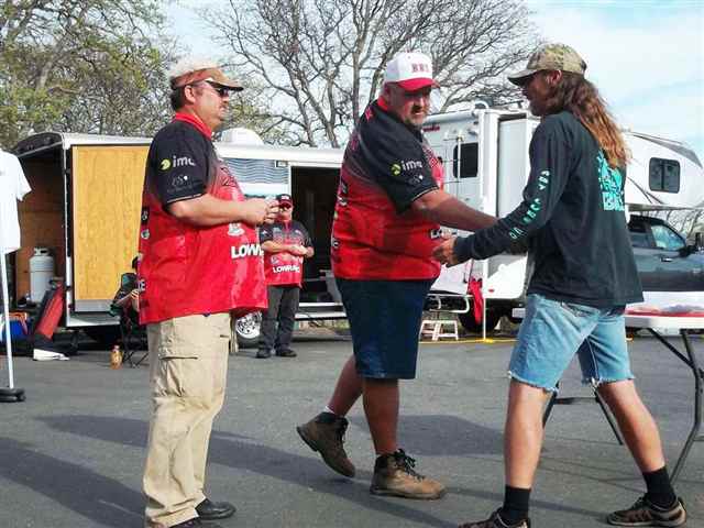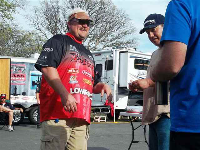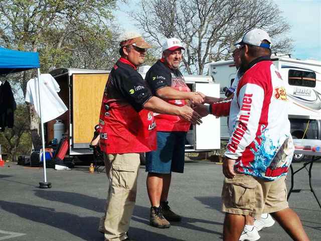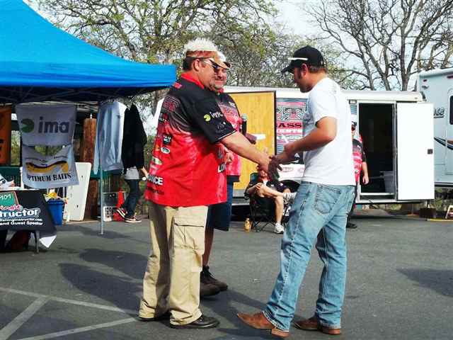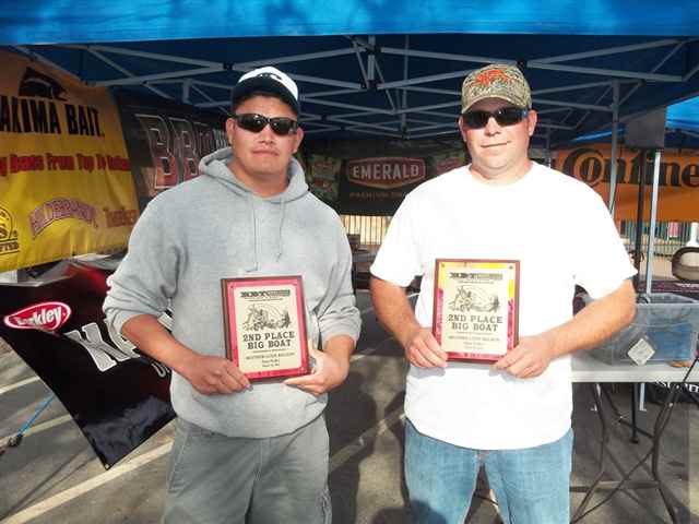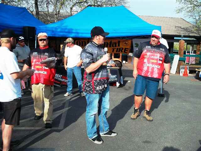 I just can't believe it. No, that can't be right. Half of the Mother Lode Tournament circuit is over. Has It really been three months and three tournaments already? I guess what they say , time flies when you're having fun, is right. Three down and three to go. The third tournament for the Mother Lode Region of The Best Bass Tournament Circuit was held at Don Pedro Lake on March 16, 2013. We arrived at the Lake around 3:00 p.m. It was a little breeze but we were able to setup one of the pop-ups for any of the anglers that might want to pre-sign. This also gives us a chance to setup early for the next days' activities. Kevin is very adamant about being ready for the anglers, and rightfully so for that is his job. I was lucky to have worked for a government agency for almost thirty years and I have to tell you I have had more fun working with you anglers this past few years than all the years with the government. The only problem is that I can't get Kevin or Randy to give me a retirement plan. We really enjoy being at the Lake the night before the tournament because we are having fun talking to the anglers that are pre-fishing for the event. We have anglers swing by just to say HI or to ask questions about the event. We even have campers and friends stopping by to see what we are doing. When we go into the camper it is time for a good movies and then lights out, because 3:00 a.m. comes early. 3:15 a.m. Kevin's alarm goes off, snooze, 3:20 a.m. Kevin's alarm goes off again, snooze, 3:25 a.m. Chelby's alarm goes off, there is movement and we are up and going. Good thing for electrical timers or else the coffee wouldn't be ready. Mornings are always busy. Turn the lights on, finish putting-up the pop-ups, put out the tables and put out the paperwork, clip boards and pins. Next, load the truck up with lights and everything needed for the boat checks and set all that up. Finally if we are having a Marina weigh-in we need to load the staff boats up with equipment to be taken to the Marina. We are ready by 4:00 a.m. for the anglers to arrive. As the anglers arrive the coffee is ready and the goodies are set out. The anglers start to come in one at a time and the excitement and enthusiasm is always running high. We have been with some of these anglers for four years now and it is always fun to watch and hear them tease Chelby. It is wonderful to see a teenager be able to dish out everything that is dished out to her. She has grown up with many of you anglers and she thinks the world of you all. Registration forms are filled out by the anglers and boat numbers are handed out. To make things easier for the established anglers' we ask them to fill out their names and membership numbers only on the registration forms and to sign the bottom. If they are a new member then we need all of the information asked for on the form. Yes we need your social security number also because we know that you will be winning money. Boats go through boat checks and then put into the water. As safe light approaches a poker chip is drawn, this time by Matthew Clark. Thank you, Matthew for drawing boat number 51 as the first to blast off. Kevin heads down to the dock with the bullhorn and official clock in hand. A quick review of the Lake rules, off limits and BBT rules, then the boat flights are announced. With 58 boats it was decided to do four flights. The first flight was boats 51 thru 5 to weigh in at 3:00 p.m., followed by the second flight boat 6 thru 20 at 3:15 p.m., next the third flight boat 21 thru 35 at 3:30 p.m. and finally the fourth flight boat 36 thru 50 at 3:45 p.m. The weight in was to be at the Marina in the afternoon. Good luck anglers and their off. Kevin then returns to the parking lot and starts to get ready for the afternoon awards. Paperwork is balanced, envelopes are filled with winnings and weigh-in slips are written up. With the paperwork done we move to the sponsor banners and trophies. It just happens that we have three tournaments in a roll at Don Pedro so pictures were taken of the displayed banners so we can setup the same way for the next two tournaments. A bite of lunch and maybe a short nap are in short order. Then down to the Marina for the weigh-in. Once down at the Marina, the weigh table and tubs are setup along with the scale. The bump tank is filled with water and wrapped with the BBT Sponsor Banner and the microphone and speakers are set up. We're ready and waiting for the boats and anglers to come with their fish. Not all anglers have a good poker face, some come in with a Hugh smile and others come in with a sad and tired face. When you see an angler coming to the scales with two bags you know that he/she had a good day. If you have a fish over five pounds you have to put it into a bag by itself. All the fish are weighted and the scales were called closed by Kevin at 3:55p.m. The staff unassemblies the weigh station, empties the bump tank and loads it all on their boats. Kevin, Mom and Dave head back to the parking lot for the awards. It takes about another fifteen minutes to finish the standings and then we are ready for the awards. As we are getting the awards in order the anglers are given Diamond Nut giveaways and the left over goodies from the morning are set out. Now the real fun begins. The first place spot went to the team of Matt Frazier of Denair and Sam Sawyer of Turlock. These two anglers brought up two bags of fish weighing-in at 27.55 pounds. In those bags was the first place big fish for the tournament. It topped the scales at 8.82 pounds. What a beauty she was. Matt and Sam were in all of the options and took home a check in the amount of $2,760.00. Matt and Sam fished the lower part of the Lake, used bed fishing and spinner bait methods and used S-Waver and River Z Sea spinner baits for lures. They would like to thank the Bait Barn, Berserk Baits, River Z Sea, St Croix, Black Dogg Baits and Tactical 5.11 for being their sponsors. Congratulations for a job well d